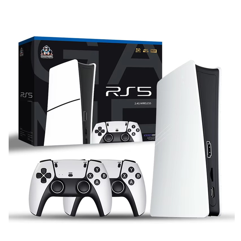 کنسول بازی RS5 مدل Q10SE یک دستگاه سرگرمی مدرن با طراحی الهامگرفته از PS5 است که تجربهای نوستالژیک از بازیهای کلاسیک را برای شما فراهم میکند. این کنسول با بیش از ۴۰٬۰۰۰ بازی داخلی، گزینهای عالی برای کودکان و بزرگسالان به شمار میآید.فقط کافی است دستگاه را از طریق کابل HDMI به تلویزیون یا مانیتور متصل کنید تا دنیایی از بازیهای خاطرهانگیز را در وضوح 4K UHD تجربه کنید.دو دسته بیسیم 2.4 گیگاهرتز امکان بازی دو نفره را بدون تأخیر فراهم میسازند.دارای حافظه ۶۴ گیگ از نوع TF و محل نصب کارت حافظه جانبی برای گسترش فضای بازی است.از طریق دو درگاه USB و یک درگاه میکرو USB میتوانید کنترلر یا لوازم جانبی دیگر را نیز متصل کنید.این کنسول از جستجو، پیشنمایش، نشانهگذاری و ذخیره پیشرفت بازیها پشتیبانی میکند.ابعاد کوچک و وزن سبک آن باعث میشود بهراحتی قابلحمل باشد و در هر مکانی مورد استفاده قرار گیرد.RS5 انتخابی ایدهآل برای کسانی است که میخواهند با هزینهای مناسب، لحظات شاد و خاطرهانگیز بسازند.