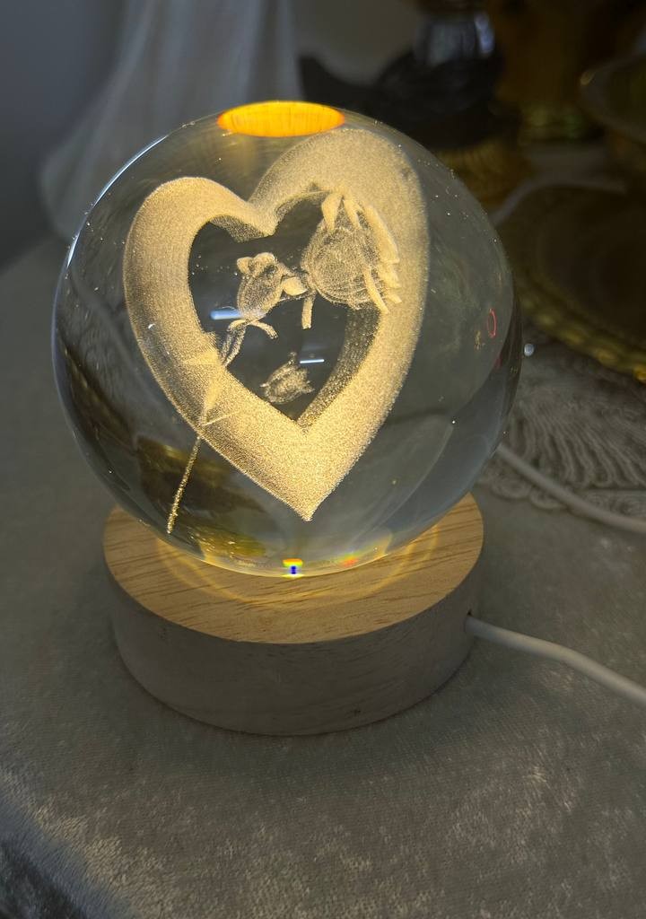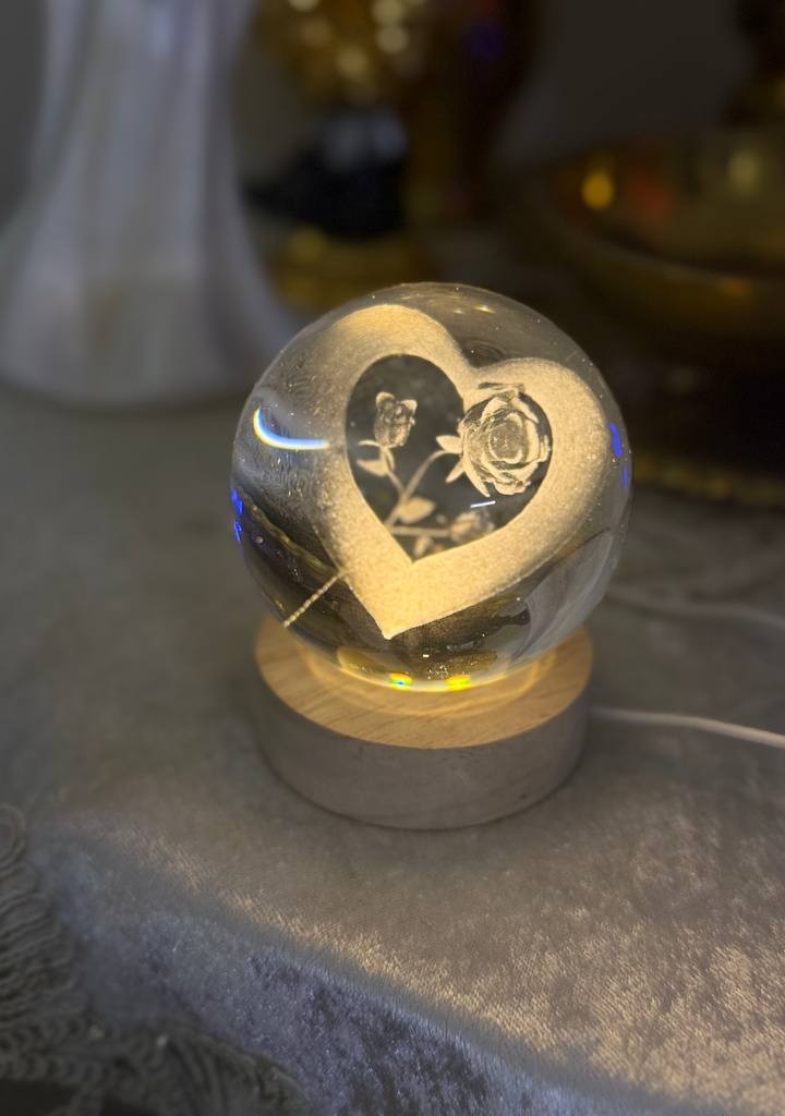 چراغ رومیزی مدل گوی کریستالی طرح قلب و گل